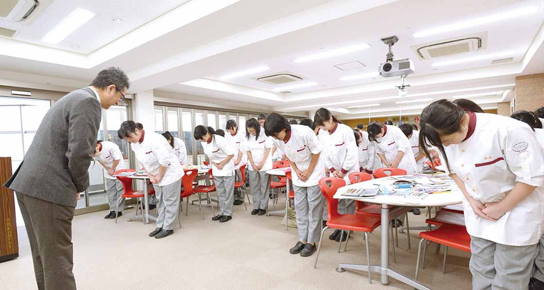 実習はメインの専任教師1名と2名の助手が丁寧に指導。4人体制で、生地をこねるミキサーは各テーブルに2台ずつ配置されています。ミキサー当番、窯当番などを交代しながら、全員がパンづくりの各工程の技術を身につけていきます。少人数で携わる作業が多く、効果が上がりやすい授業です。
