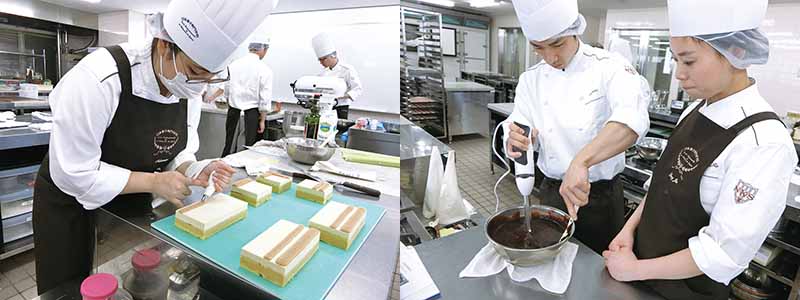 今週のテーマを専任教師から発表。工芸菓子の場合は構成やモチーフを考え、図案を描く。