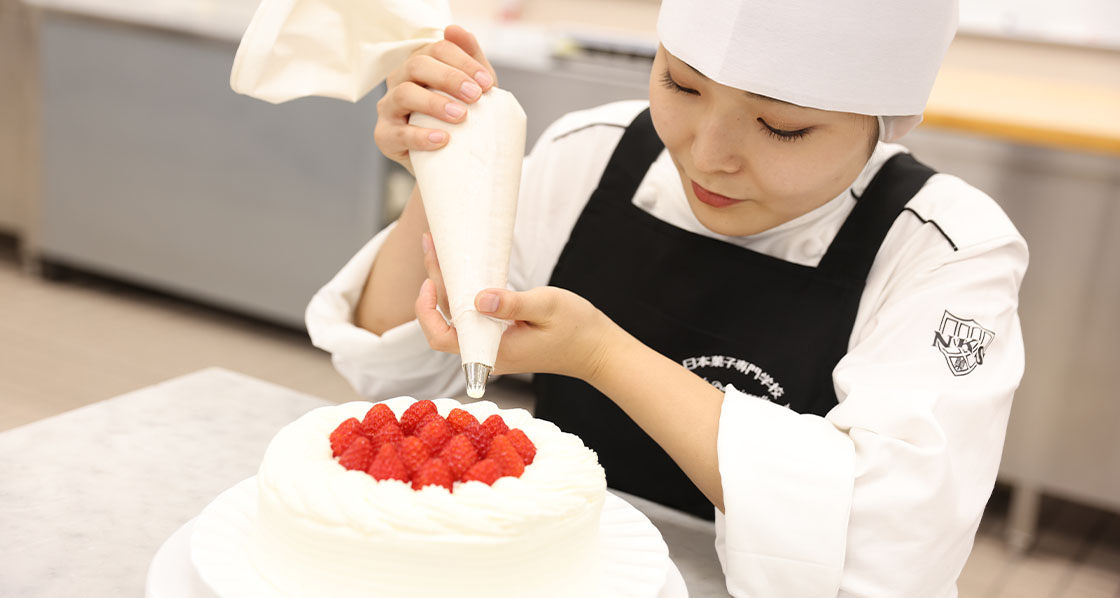 卒業後は製菓現場で即戦力となることを目標に、基礎技術を身につけられる実践的なカリキュラムを実施します。