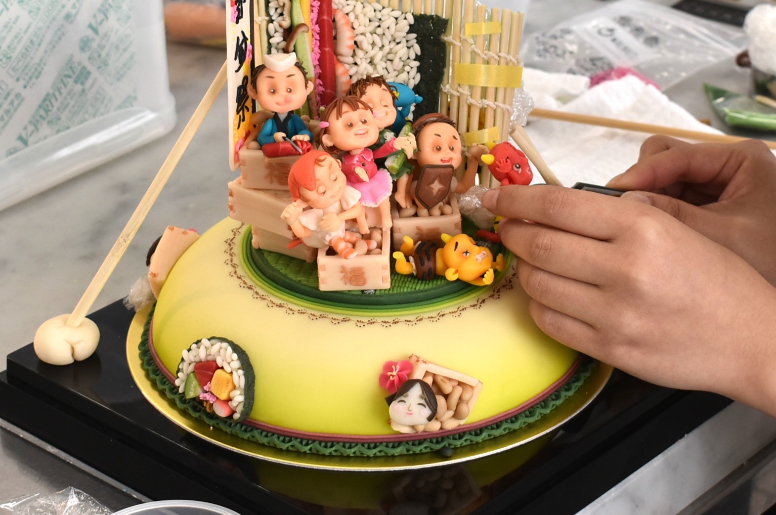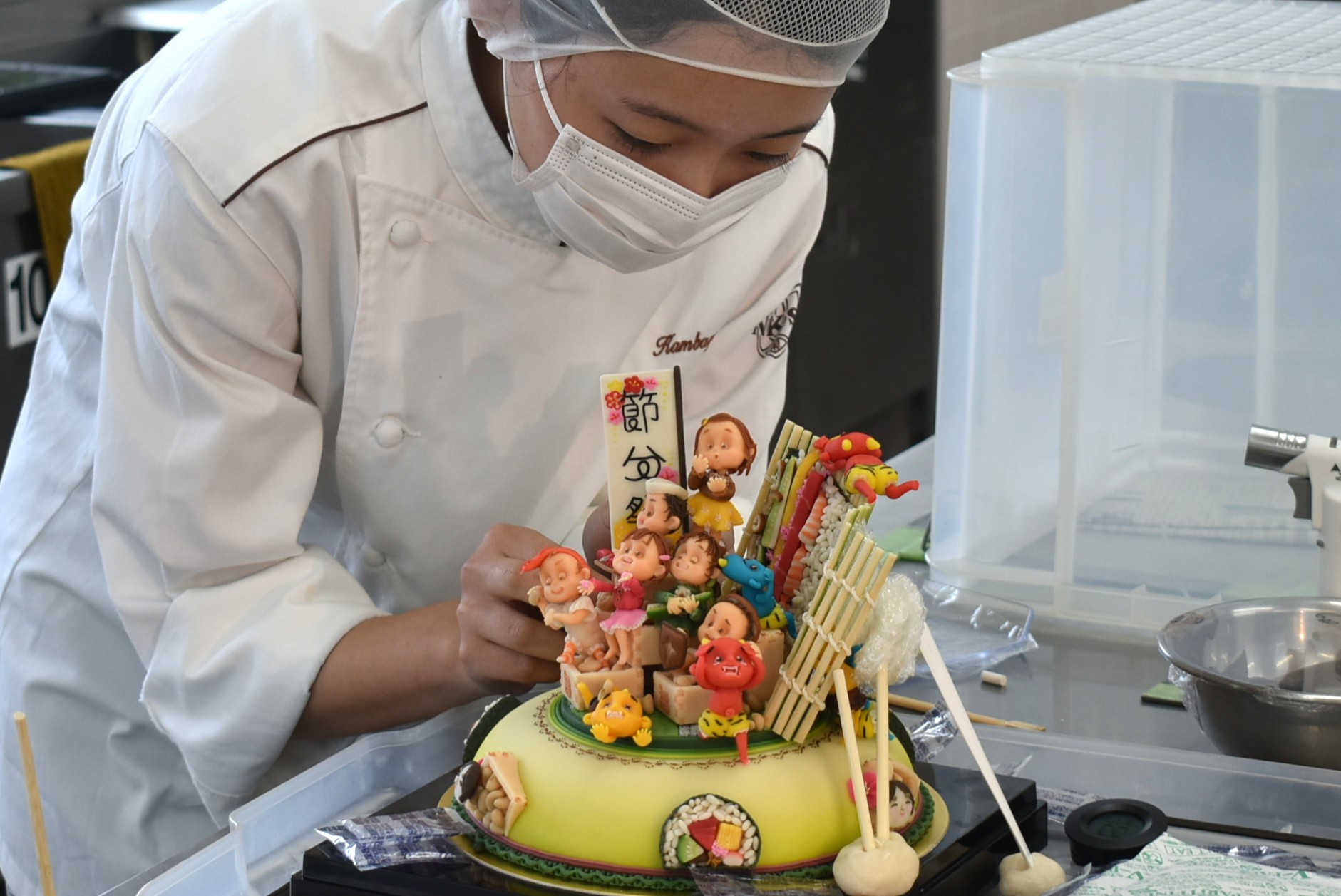マジパンの上林さんは前回の「彩の国ケーキショー」と同じく、「節分」をテーマに取り組みました。