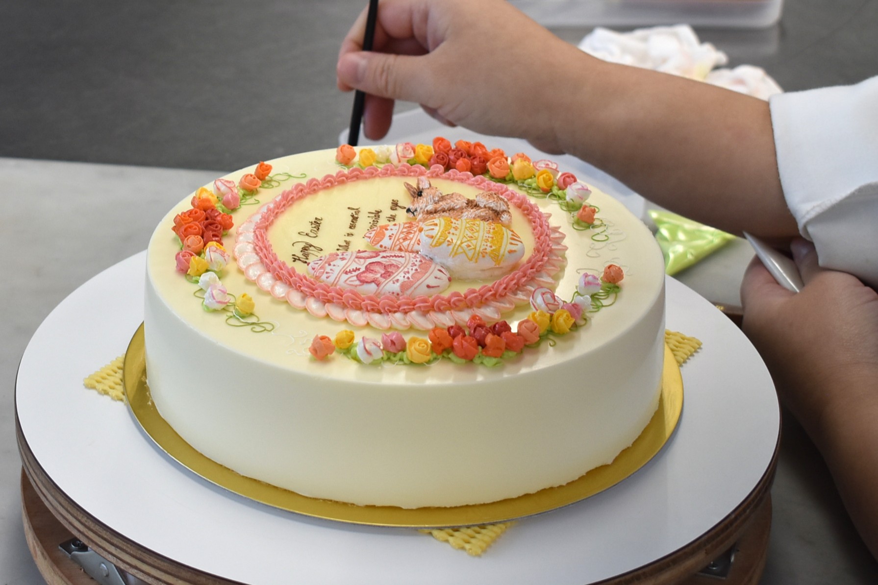 上林さんはマジパンデコレーションを、余さんはバタークリームデコレーションに挑戦!
