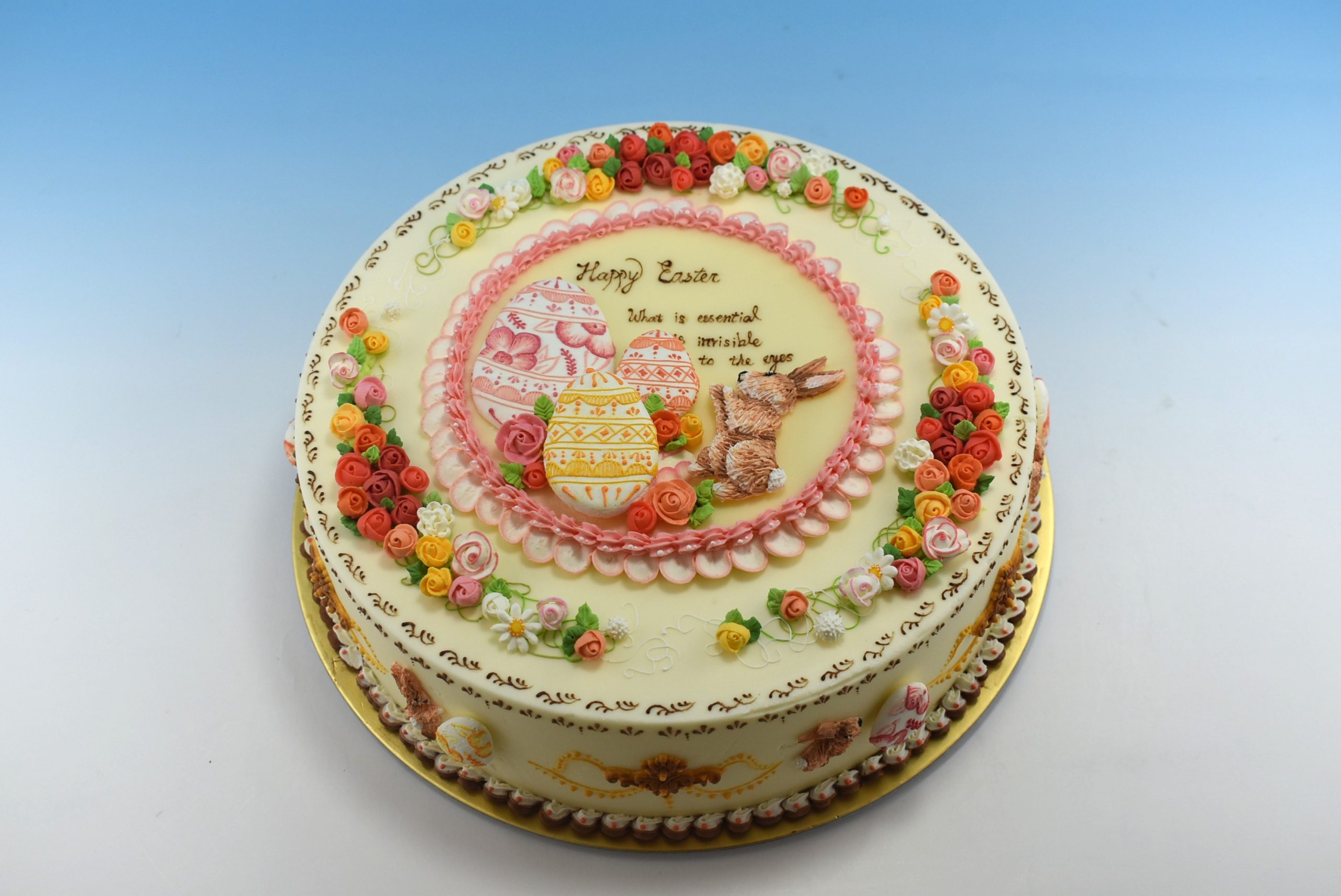 バタークリームデコレーションはマジパン以上に仕上げで神経を使わなければなりません。一度土台に花を落としたり、パイピングを間違えてしまうと一からやり直しになることが多いので集中力がとても必要です。